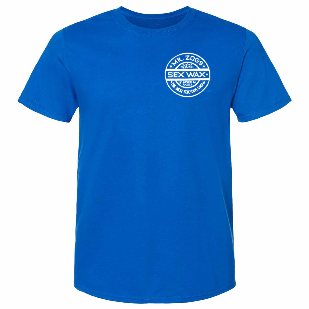 Screen print of the Sex Wax Circular logo with a retro pinstripe line. Small logo front print with large logo on back.