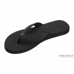 The newest item in the Ladies rubber sandal line. The Bella has a single layer arch with a small wedge rising from the arch to the heel. Made with a soft rubber top sole and a tapered canvas strap The Bella is instantly comfortable. We used bonded nylon thread and the layers are triple glued, you know when you buy Rainbow®, you’re buying quality!