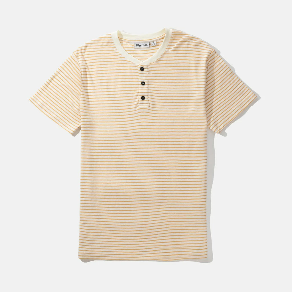 Rhythm Men’s Henley Linen Stripe S/S T-Shirt – Natural