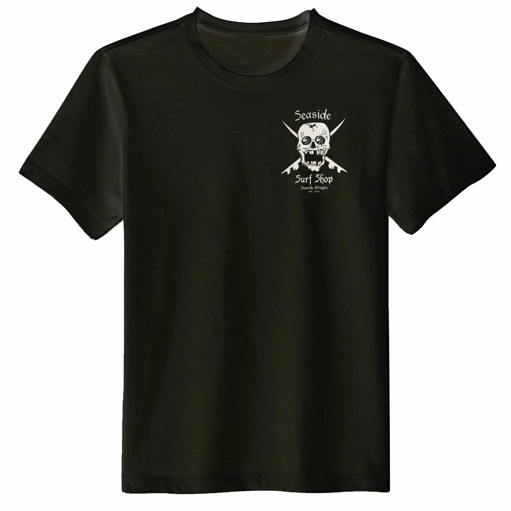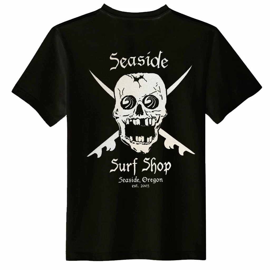 Skulls and surfboards on a Seaside Surf Shop T-shirt. What could be more natural than that?