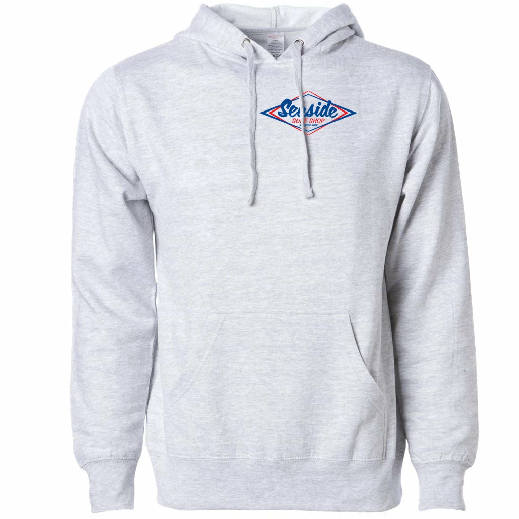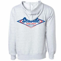 Be the first to review “Seaside Surf Shop Mens Vintage Logo Hooded Pullover Sweatshirt – Grey Heather/Red Blue” Cancel reply