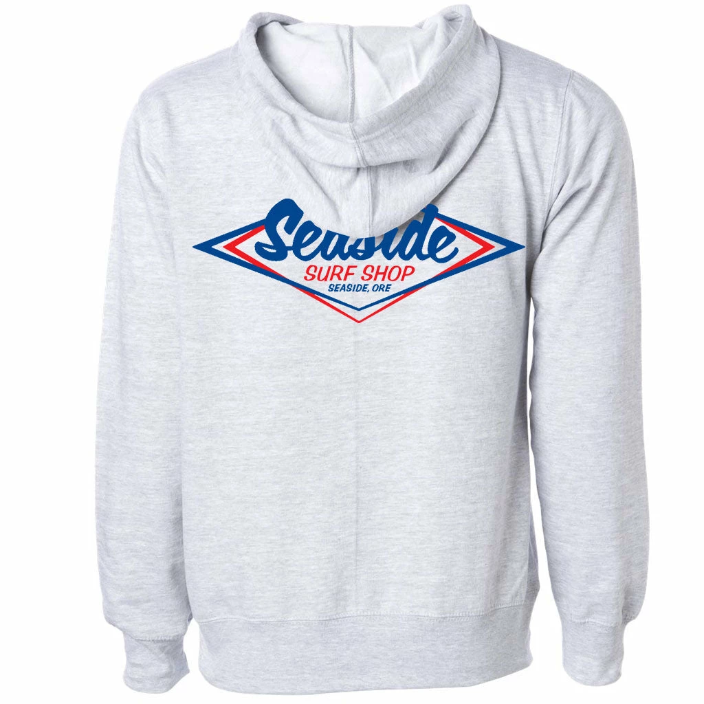 Keep it classic. A hoody warm enough for here, durable and soft, with a Seaside Surf Shop logo that’s much-loved by young and old-timers alike.