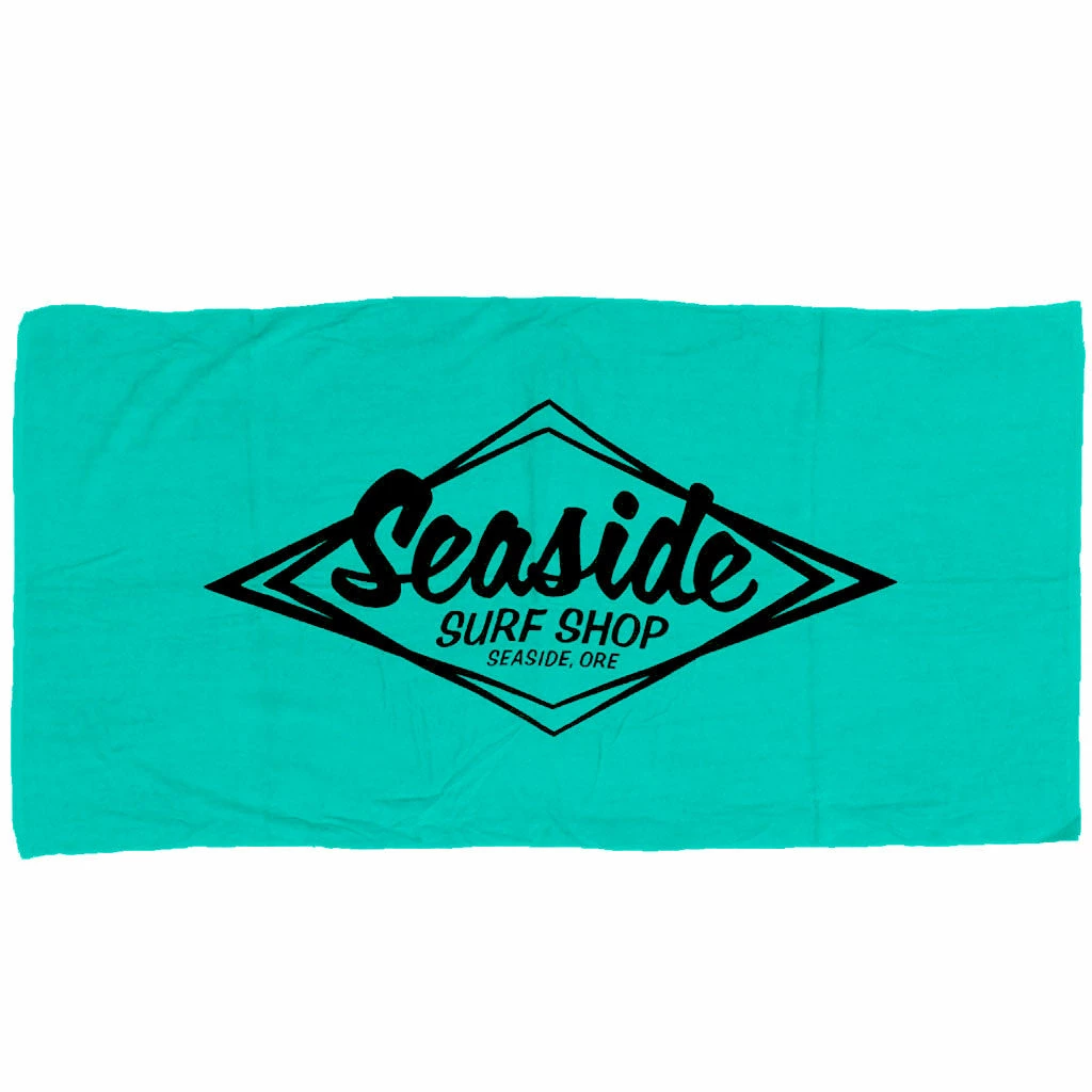 This 30×60 sized Seaside Surf Shop Vintage Logo Beach towel is made with Terry Velour 100% Cotton.