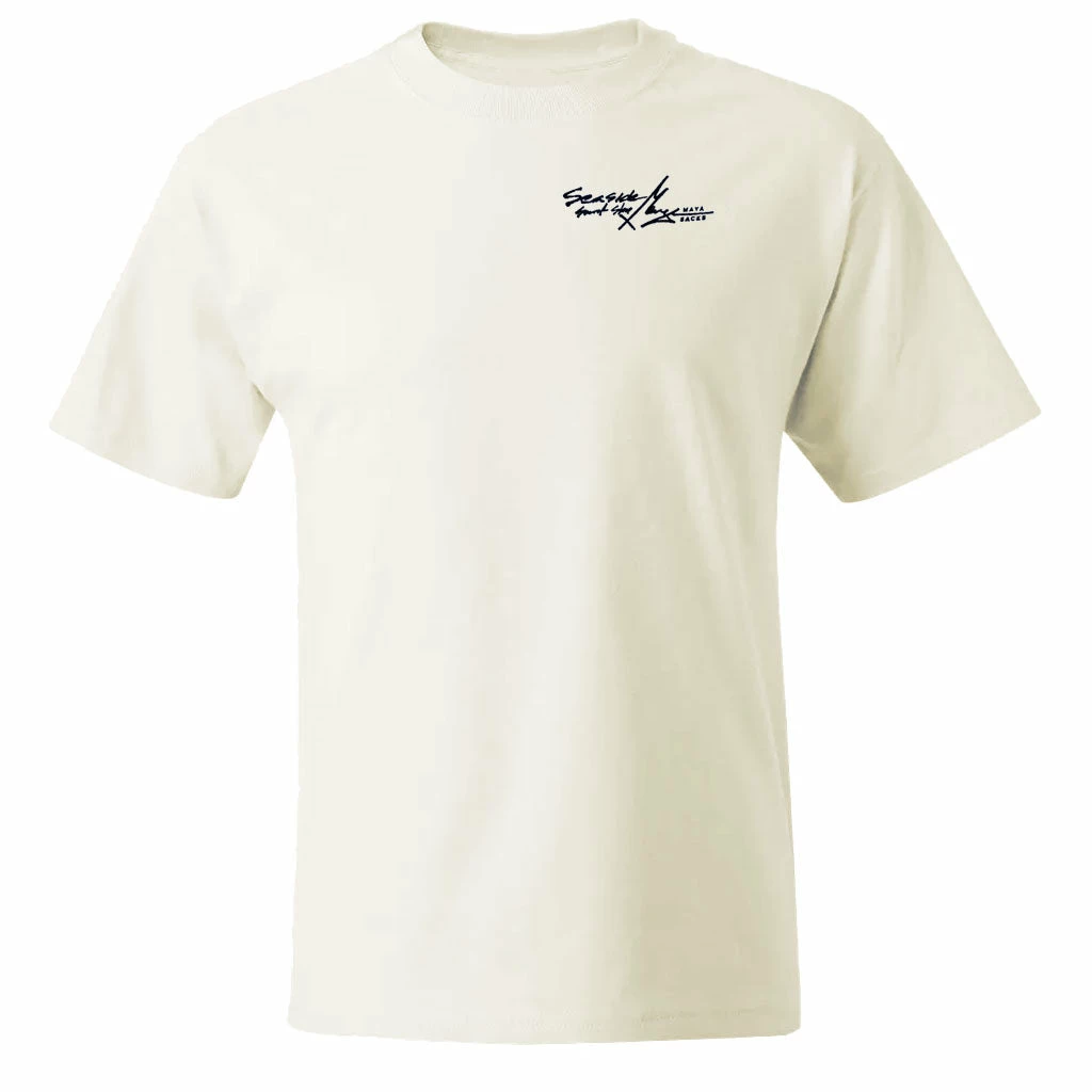 Seaside Surf Colab with Maya Sacks Artist Series screen printed on a tee