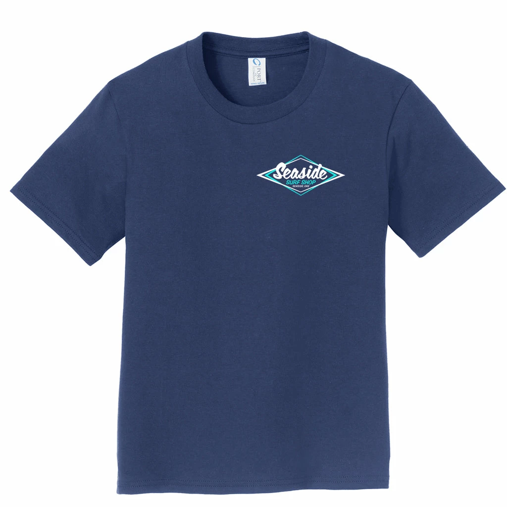 Now in youth sizes our vintage logo screened on royal blue with this stoked infused colorful tees with our local logo on front and back.